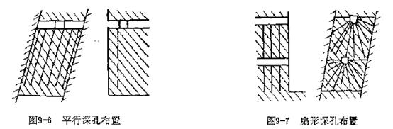 嚴格來講,地下采礦場使用的中深孔崩礦和深孔崩礦比較,從爆破本質上講,沒有嚴格區(qū)別。但是,深孔爆破在其炮孔布置形式、孔深等方面有其特點,于是,把用潛孔鉆機鉆鑿孔深大于15m,孔徑大于80mm的平行深孔、水平扇形深孔等歸入深孔爆破。