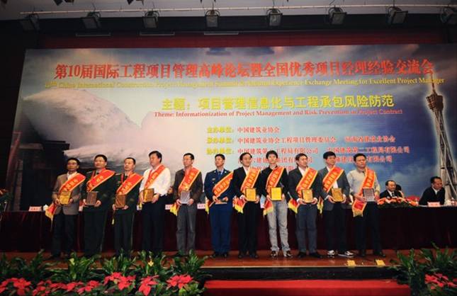 20111023日-24日,第十屆國際工程項目管理高峰論壇暨全國優(yōu)秀項目經理經驗交流會在千年古都、牡丹花城洛陽隆重舉行。全國各省、自治區(qū)、直轄市建筑業(yè)協(xié)會(聯(lián)合會)以及各行業(yè)協(xié)會,建筑業(yè)企業(yè),工程項目經理等各方代表,中建協(xié)工程項目管理委員會理事共500余人參會。我集團公司第一房建公司總經理項修國同志喜獲2010年度全國建筑業(yè)企業(yè)優(yōu)秀項目經理,并參加了此次論壇。