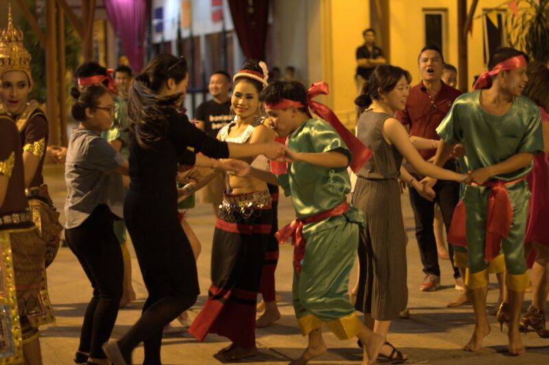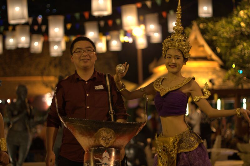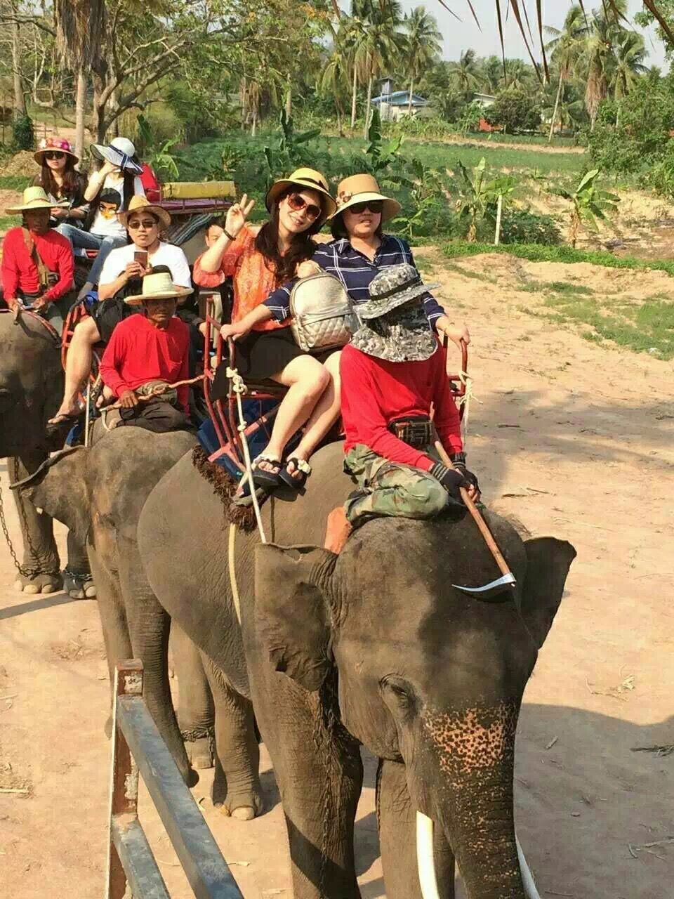 第一天早上七點鐘,大家搭乘旅游大巴前往寧波機場,一路上歡聲笑語,甚是融洽!中午12:30,航班準(zhǔn)時起飛,經(jīng)過長達(dá)四個半小時的飛行到達(dá)曼谷廊曼機場。一出機場,熱情的泰國妹子為我們戴上鮮花,并對我們說一句“薩瓦迪卡”,意為祝福平安。隨后當(dāng)?shù)氐膬晌粚?dǎo)游帶領(lǐng)我們分別上了兩輛大巴,經(jīng)過近一個小時的車程,我們到達(dá)第一站——暹羅夢幻劇場,在這里我們和大象合影,并欣賞了泰國獨特的民族風(fēng)情舞蹈。之后,進(jìn)入泰國規(guī)模最大的宏偉華麗劇院觀賞世界級的泰國藝術(shù)和文化遺產(chǎn)表演,深入地了解泰國四個朝代和各個部域民村的“泰國農(nóng)村”生活、傳統(tǒng)、文化以及藝術(shù)和手工藝。