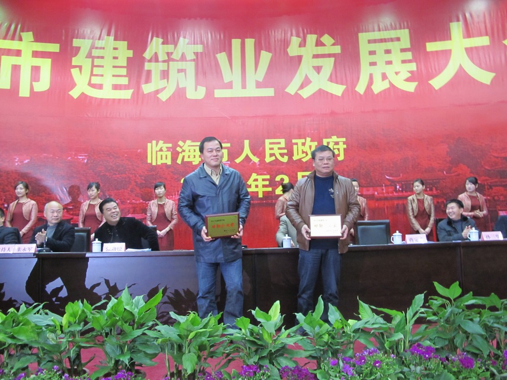 會議表彰了2011年度全市建筑業(yè)系統(tǒng)先進集體和個人,并舉行了隆重的頒獎儀式。我集團再度被評為臨海市建筑業(yè)龍頭企業(yè),董事長梁才獲得臨海市建筑行業(yè)功勛企業(yè)家稱號。(詳見二版二○一一年度市地級建筑業(yè)系統(tǒng)先進集體和個人獲獎名單)