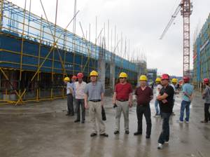 6月28日,為積極推進(jìn)“安全生產(chǎn)月”主題活動(dòng),創(chuàng)建安全標(biāo)準(zhǔn)化工地,促進(jìn)企業(yè)安全文化建設(shè) ,公司在東錢湖鎮(zhèn)中心小學(xué)遷建工程舉辦了建筑施工安全文明標(biāo)準(zhǔn)化現(xiàn)場(chǎng)觀摩會(huì),臺(tái)臨、永嘉、寧波、鎮(zhèn)海等地區(qū)在建項(xiàng)目部管理人員共計(jì)80余人參加,東錢湖鎮(zhèn)政府、建設(shè)局、業(yè)主代表、教育局、東錢湖中心小學(xué)相關(guān)領(lǐng)導(dǎo)蒞臨現(xiàn)場(chǎng),公司副總胡田宏、蔣國星、王國棉到會(huì)。此次觀摩會(huì)總體反響較好,讓觀摩的人員感觸較深的是項(xiàng)目部在安全生產(chǎn)方面的投入與管理。該工程占地面積較大,實(shí)際建筑面積小,無論是場(chǎng)地的硬化,還是安全設(shè)施的布置都做得極到位。在施工中項(xiàng)目部采用定型化的產(chǎn)品,合理布置各類安全提示牌和安全宣傳漫畫;設(shè)置門禁系統(tǒng),規(guī)范執(zhí)行實(shí)名制考勤,有效避免民工工資糾紛;在部份未硬化的場(chǎng)地上和沙、石等材料堆場(chǎng)采用安全網(wǎng)鋪蓋,并設(shè)置專用噴淋,有效地控制施工揚(yáng)塵;在生活區(qū)設(shè)置食堂、宿舍、職工活動(dòng)室、閱覽室、網(wǎng)吧、室外健身區(qū)、露天電影院等,保障民工的基本生活條件,同時(shí)也豐富了民工的業(yè)余生活?;顒?dòng)相關(guān)人員在對(duì)施工現(xiàn)場(chǎng)進(jìn)行實(shí)地參觀體驗(yàn)后,在現(xiàn)場(chǎng)會(huì)議室召開了交流會(huì),工程項(xiàng)目負(fù)責(zé)人張經(jīng)理就項(xiàng)目目標(biāo)制定、專業(yè)團(tuán)隊(duì)建立的重要性以及他在施工過程中的幾點(diǎn)感觸與大家作了生動(dòng)的交流。